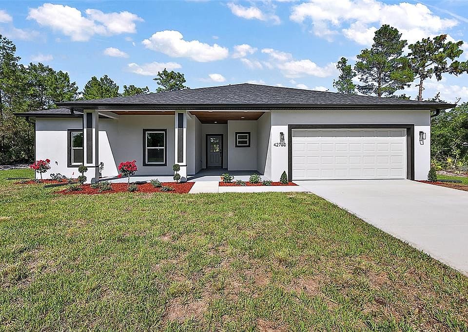 PRICE REDUCTION !!! Step into your dream home with this newly constructed masterpiece in Eustis! As you enter, you'll be greeted by a spacious open floor plan that seamlessly blends elegance with functionality. Boasting 5 bedrooms, 3 full baths, and 1 half bath, this home offers versatility for your lifestyle needs. The split floorplan ensures privacy, with the master suite tucked away from the hustle and bustle of daily life. Pamper yourself in the luxurious master bath complete with all the modern amenities you desire. Every detail has been meticulously crafted, from the water softener and filtration system ensuring pristine water quality throughout the home to the laundry room equipped with a sink and washer/dryer hookups for added convenience. Additionally, this home is equipped with ready-to-use hookups for an outdoor kitchen. Imagine the freedom to design your outdoor culinary oasis to your liking, without the hassle of installing the utilities needed for such a feature—it's all been expertly prepared for you. Situated on a sprawling 1-acre lot, the possibilities for outdoor enjoyment are endless. Whether you envision a lush garden oasis, a sparkling swimming pool, or a spacious lawn for family gatherings, the grounds await your personal touch. Energy-efficient double-pane windows adorn the property, providing both noise reduction and UV protection. Imagine cozy evenings by the electric fireplace, entertaining guests in the expansive living area, or whipping up culinary delights in the double ovens and cooktop. But the allure of this home extends beyond its walls. Nestled in charming Eustis, residents enjoy deeded access to Lake Norris, offering a plethora of water activities such as kayaking, fishing, and nature watching. Don't miss your chance to own this meticulously crafted home where every detail has been thoughtfully considered. Your forever home awaits in beautiful Eustis!
