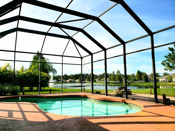 WELCOME HOME to this hard to find 4 bedroom 3 bath 3 car garage pool home in the quiet neighborhood of Northwood Park. This 2006 Bruce Williams home is ready to its new owner. This home features an inviting tiled foyer, split bedroom floor plan, separate dining room with laminate wood floors, spacious tiled living room leading to the open kitchen with cherry wood cabinets, solid counter tops, stainless appliances and a tiled backsplash. The kitchen overlooks the family room that includes a custom built-in entertainment center and sliders opening to the pool area. Behind the family room is the 4th bedroom, 3rd bath that makes for an ideal overnight guest area or possible in-law suite. The in ground pool is solar heated for year round enjoyment. Off the pool is a convenient fenced dog run. The large screened pool area is accessible from the master bedroom as well as the living room and family room. The master suite is spacious with an extended seating area and a large walk-in closet. The master bath features a large walk in shower, dual sinks, water closet & deep soaking tub. The other two bedrooms are in the front of the home and are separated by the 2nd full bath. The laundry room has direct access to the 3 car garage. The yard backs to a tranquil pond to enjoy amazing sunsets. As a bonus there is a side paver patio with a stone firepit for an evening of S'mores and stories. There is also a neighborhood park/playground. Low HOA fees/no CDD's. Very close to 41, I-75 & I-275 making for easy commuting.