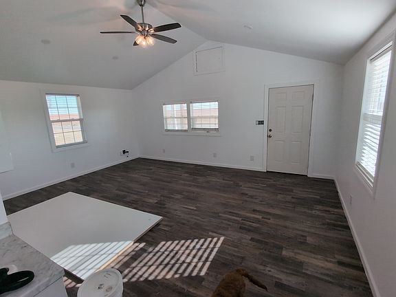 Newly fully renovated and nearing completion, this modern country home is located 15 minutes from both Levelland and Brownfield, and 25 minutes from Wolfforth/Lubbock via paved highway. Ropesville ISD is located a short 10 minutes away. Featuring 1 spacious bedroom with a walk-in closet, and 1 bath. From the front porch, the door opens into the living and dining rooms with a vaulted ceiling and vinal wood-plank flooring. A galley kitchen is on-looking with stainless-steel sink, black propane range, and refrigerator. A laundry/mud room with washer and dryer also hold the door to what will be a privacy fenced rear yard with concrete patio. 8x12 storage building inside fenced rear yard included with rental. No smoking allowed. High speed internet available. Located in a secluded community with neighborly residents, this home would be ideal for anyone desiring a front porch swing, stellar sunsets, and undisturbed views of the starry night sky. Appliances included. Taking rental applications now. 1 Year lease. $1,000 security deposit. Tenant responsible for reimbursement of all utility costs. No smoking. Small dogs potentially allowed upon approval with $25/month additional pet rent, per pet. Tenant responsible for maintaining all landscaping. The tenant selection criteria may include factors such as criminal history, credit history, current income, and rental history. If you do not meet the selection criteria, or if you provide inaccurate or incomplete information, your application may be rejected.