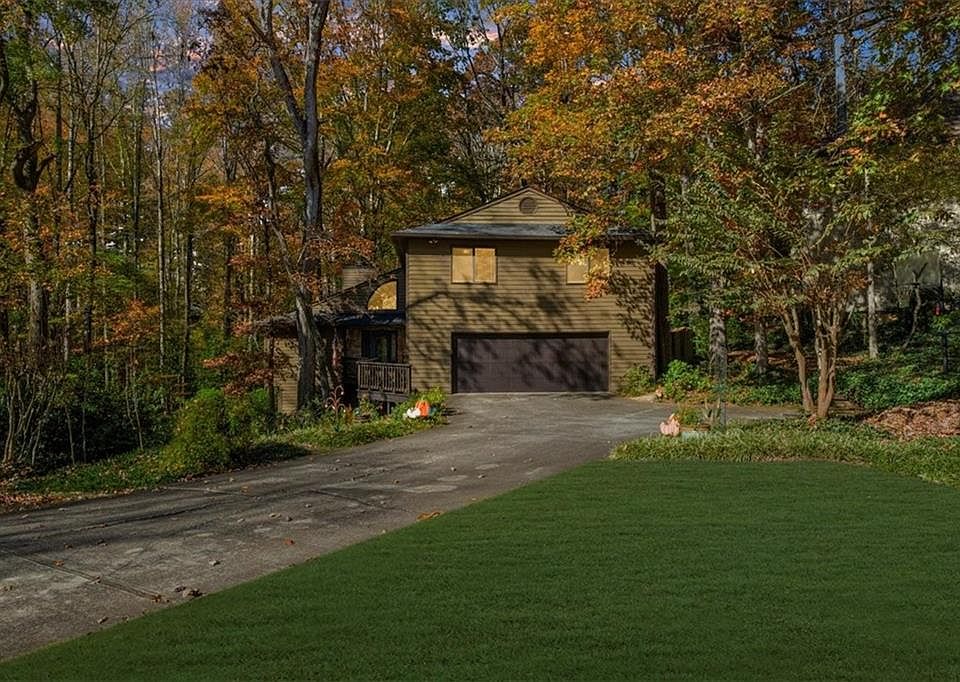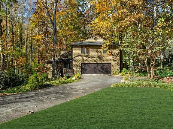 Discover a home where modern comfort meets serene seclusion on a sprawling wooded estate. Inside, expansive living spaces greet you with vaulted ceilings, abundant natural light, and a flowing open layout designed for both everyday life and entertaining. The family room, anchored by a sophisticated fireplace, connects effortlessly to a formal dining area and a versatile flex space. The eat-in kitchen features a granite-topped island, ample cabinetry, and generous countertops—perfectly balancing style and function while creating a natural gathering spot for family and friends. The primary suite offers a private retreat with a spa-inspired bath, including a jetted tub, separate shower, and a generous walk-in closet. Three additional bedrooms upstairs provide space for family or guests, while the finished basement serves as a full second living area with a kitchenette, modern bath, and flexible rooms that can adapt to your lifestyle. Step outside to your own woodland sanctuary. Expansive decks provide seamless indoor-outdoor living, ideal for entertaining or unwinding while surrounded by towering trees and the calming sounds of nature. With deer, birds, and other native wildlife often passing through, this property truly feels like a private nature preserve. A secluded fire pit area offers a peaceful escape, and the gently rolling terrain enhances the sense of space and tranquility. Perfectly situated near Mabry Park and Leita Thompson Park, this home offers easy access to scenic walking trails, open green spaces, and outdoor recreation. Located in the sought-after Lassiter High School district, with convenient access to shopping, dining, and major highways, this residence combines elegant living, unmatched privacy, and the beauty of nature—all in one extraordinary setting. The community also features two pools, tennis courts, and a lake to enjoy!