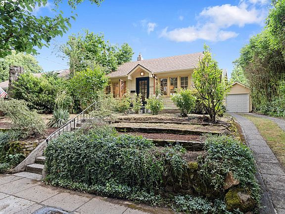 Perched above a quiet street in the desirable Laurelhurst neighborhood, this Bungalow is the Bee's Knees offering a serene living experience, original character including hardwood floors on the main level, and fresh exterior paint in 2023. Step into the welcoming living room, where a wood-burning fireplace anchors the space. A cased opening leads to a formal dining room, perfect for hosting dinner parties. The kitchen is ready for your imagination, providing an opportunity to create the culinary space of your dreams, and features an informal eating area surrounded by windows, offering a picturesque view of the secluded backyard. The main level hosts two bedrooms that share a retro-style bathroom, adding another touch of nostalgia to the home. Downstairs, the finished lower level provides even more living space with a non-conforming third bedroom, a family room with two walls of built-ins, a second full bathroom, and a laundry room. Outside, raised garden beds in the front offer a green thumb's delight, while the private backyard beckons you to unwind on the expansive patio. A tool shed and detached garage provide space for all your hobbies, and additional storage space is available in the oversized attic. [Home Energy Score = 5. HES Report at https://rpt.greenbuildingregistry.com/hes/OR10216921]