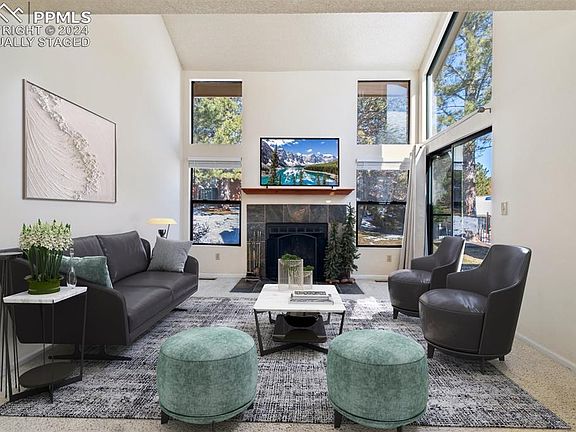 Come see this beautiful condominium in School District 12 and the Broadmoor Bluffs neighborhood! This cozy, bright unit features one bedroom, one full bathroom, open upstairs loft/office space, front and rear patio space, 2 car garage with large storage area. Bright, open kitchen with gas stove, real wood burning fireplace in the living room, community pool and club house. Washer/Dryer hook up in kitchen closet and also in the garage. Private patio out back with locked storage area. Minutes to Fort Carson, Cheyenne Mtn State Park and the Country Club of Colorado!!!