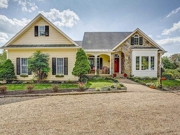 Custom-Built Two Level European Cottage built in 2001 from Southern Living Plan, situated on 9.02 acres. Total of 4BR, 3.5B, High Speed Internet throughout. Built in 2001. First Level - This beautifully maintained home has 3BR, 2.5B on 1st level, LR with woodburning FP, high ceilings, DR with tray ceiling, study with built-in bookcases, gourmet kitchen with custom cabinetry & granite countertops, breakfast room opening onto screened porch, sunroom with access to decks and rear screened porch, 1st floor laundry room, primary suite with tray ceiling, large garden tub & access to screen porch, CA Walk-In closet & large windows overlooking pasture(s). Attached 2 Car Garage. Second (terrace) Level - FR, woodburning FP, wet bar, home office, wine/pantry room, 4th BR, Full bath, Hobby Room, workshop and storage. French doors lead to stone patio & Koi Fish Pond. Outside storage shed with electricity. Preddy Creek Trail Park, Airport and Vineyards are conveniently close by. Multiple screened porches, patio and decks make for fantastic outdoor living. Pristine landscaping with mature trees, shrubs, perennials, makes it a truly special property. Escape the hustle & bustle of city life for peace and quiet. THIS IS A MUST TO SEE!