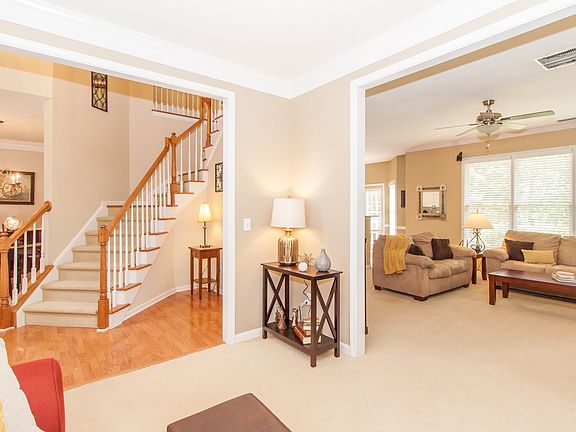 - Interior: Entrance Foyer, Foyer 2 Story, Double Vanity, High Speed Internet, High Ceilings 9 ft Main, His and Hers Closets, Carpet, Disappearing Attic Stairs