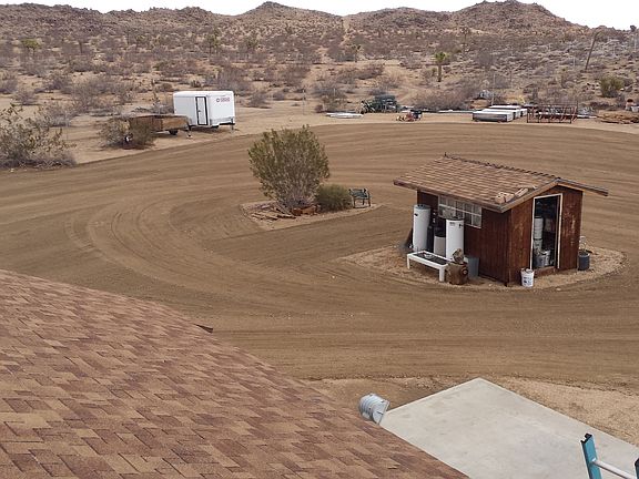 Wow! One of the most special and rare locations in the Morongo Basin! This valley is up against the west side of the Bartlett Mountain. Tucked in the hillside, this ranch home is very lovely! Features a gorgeous newly remodeled kitchen and baths, a large open great room with vaulted ceilings and a split bedroom plan. The Master bath is just gorgeous, & master has it's own attached office. The house has beautiful bamboo flooring and newer carpets in bedrooms. Nice French doors from living room to back yard patio and also from bedroom to a courtyard. The kitchen is large, with custom cabinets, gorgeous granite, stainless steel appliances. Inside laundry room, and double attached garage. Large storage containers, some can stay and some do not. This is a special location, all fenced in with solar security gates. The views in every direction are gorgeous! Mountains and hills all around. Bring horses, kids, or vacationers; this is perfect for everyone! Only 10 minutes from town.