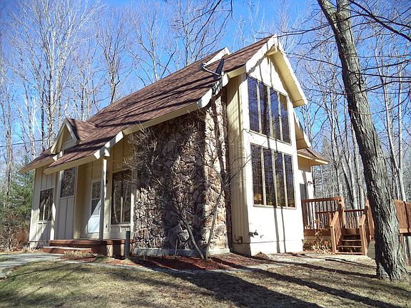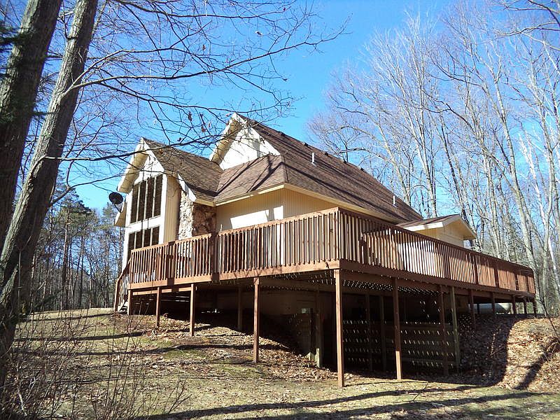 Beautiful 2 story home on 10 acres of mature woods. Very private with thick woods between home and asphalt road. Natural oak and hickory floors thru-out. Large tiled bathrooms. Granite counter tops. All appliances stay. Large Anderson windows for entire home. High efficiency furnace and central air. Garden areas with raspberries and blackberries. Huge wooden deck to relax and enjoy wildlife. 32x42 garage with heated workshop overhead. Full walkout basement with a 17x19 room finished in spruce paneling from the property. Full house automatic backup generator system. Living room has a 2 story vaulted ceiling. This is a beautiful home and is in immaculate condition.
