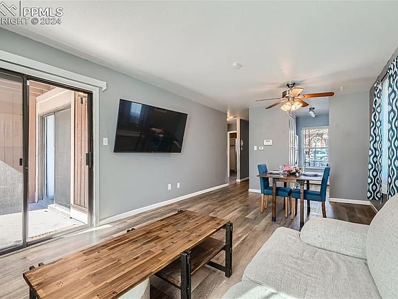 Welcome to your cozy retreat in the heart of Colorado Springs! This charming 2-bedroom, 1 bathroom main level condo offers a perfect blend of convenience, comfort, and amenities. As you step into the unit, you're greeted by a warm and inviting living space, ideal for relaxation or entertaining guests. You'll enjoy the in-unit laundry closet and the natural light that 2 sliding patio doors offers this space + space to enjoy those summer night dinners on the back patio. The condo features two well-appointed bedrooms, providing plenty of space for rest and rejuvenation. The full bathroom is conveniently located and boasts modern fixtures and finishes for added style and functionality. One of the highlights of this condo is its easy access to amenities. Residents can enjoy the community pool, perfect for those sunny Colorado days, and make use of the clubhouse for gatherings or events. Additionally, the proximity to dining and entertainment options including multiple parks and trails nearby, ensures that you're never far from great restaurants, shops, and activities. For added convenience, the condo includes 2 storage closets, allowing you to keep your belongings organized and easily accessible. Whether you're a first-time homebuyer, downsizing, or looking for a low-maintenance living option, this condo checks all the boxes. Located in Colorado Springs, known for its scenic beauty, outdoor recreation opportunities, and vibrant community, this condo offers a fantastic lifestyle. Don't miss out on the chance to call this place home!