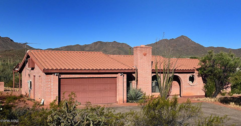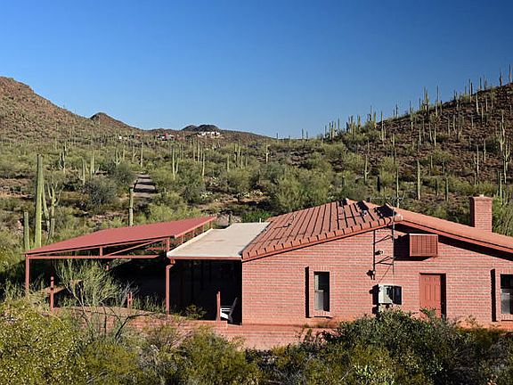 Live the relaxed life in this solid block home on over 3 acres of natural open desert. This home is nestled between hills on three sides and yet still has city views to the east. Enjoy the excellent Tucson sunsets sitting under the epic 1190 square foot covered back porch. 2 year old A/C and new carpets! Seclusion, nature and still just minutes from the city! This home is priced to sell, grab it before it's gone!