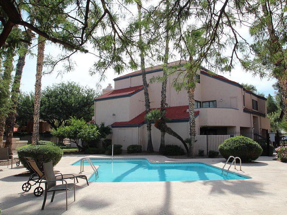FULLY APPROVED FHA condo complex. Main level 2 bedroom condo in great central locale just off the loop path on the Rillito River (Limberlost & Campbell Ave). Short commute to shopping and dining at St. Phillips Plaza, close to UMC, & 4 miles from U of A. The grounds are lush mature landscaping; a mixture of mature trees and lush green grass. Very well maintained condo community with community pool, jacuzzi, and tennis courts. First floor unit with 2 bedrooms and 2 baths. Open bright great room plan w/ floor to ceiling windows to gated courtyard patio w/locked storage closet. kitchen cook area opens to dining area. Large walk in pantry/storage. Great LOCK & LEAVE winter retreat or student housing? HOA covers water, sewer, trash, roof, & grounds maintenance.