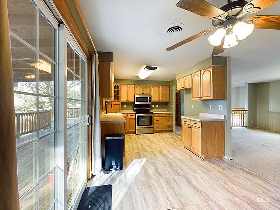Spacious split entry family home with great investment potential! Through the front door, you walk up the stairs and to your right, you will find a large pantry, closet, 3 bedrooms, and bathroom with a jetted tub. To the left, you will find a large living room, dining room, and kitchen. The dining room opens onto the second floor patio that extends the length of the house and is partially covered. The downstairs level includes a large unfinished family room with a wood burning stove that heats the house beautifully, two more bedrooms, full bath, storage area, and laundry area. French doors lead out to another patio complete with a large hot tub. The property features a large detached shop that is fully heated, perfect for recreation and vehicles. The footprint of the shop is 30x50 and the rear of the shop includes second floor storage. The lawn sits on just under an acre and includes an in-ground sprinkler system, flower beds, large garden and trees. The property also has its own well and septic.