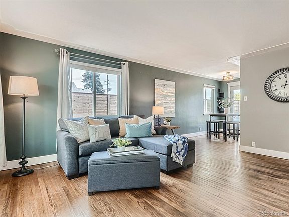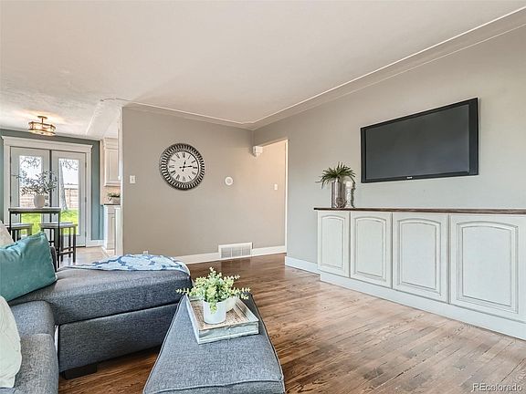 What a great find! This beautiful and well cared for home with modern updates and finishes, is waiting for you. Completely updated kitchen w/ stainless steel appliance package, Blue Pearl granite countertops, modern cabinets and Travertine tile backsplash. Updated bathroom with high-end finishes and travertine floors. 3rd bedroom could double as an office and has custom built in iron & wood shelving. Gorgeous Oak hardwood floors throughout and more built-in shelving and cabinets in living room. Great curb appeal with stucco, ledge stone materials, built in planter and xeriscaped front yard. Beautifully landscaped back yard that features mature trees and 250 feet of newer horizontal fence. As you walk through the French Doors to the huge backyard, you're greeted with a large patio entertaining space, perfect for grilling and large gatherings. Established garden is ready for your green thumb. Enjoy the outdoor lighting and an amazing sunset in the Hot tub! Detached 2-car garage with the only concrete paved alley in the neighborhood. OWNED 3.25KW solar system means extra savings year round! Central heating, AC and several ceiling fans will keep you cool. Newer roof replaced in 2013. Sprinkler system in front and back. Centrally located in popular South Broadway Heights just a short distance to Downtown Englewood shops, restaurants, The Gothic Theater and the light rail! 10 minutes to downtown Littleton, 20 minutes to downtown Denver and many other nearby amenities.