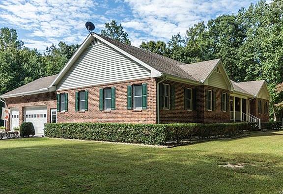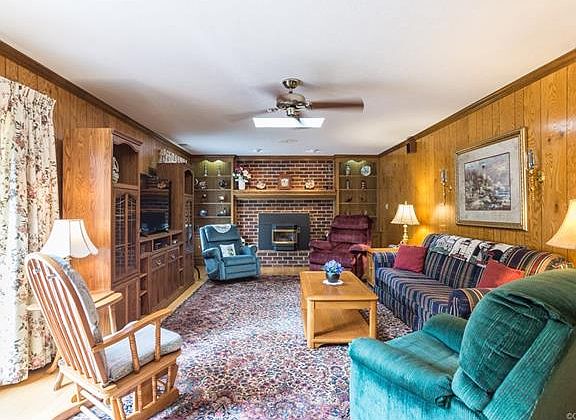 Amazing property on 5+ acres includes 4BR, 2 1/2 baths, indoor pool house, office building, & more! The all brick ranch has been built with multiple extras! The FIRST FLOOR MASTER bedroom has it's own full bath & separate HOT WATER HEATER, plus 2 walk-in closets, The elegant DR has a chandelier, crown molding, chair rail & beautiful hardwood floors.The Family Room has a wood FP, built-in shelving,& opens to the kitchen which was recently updated with marble counter tops, stainless appliances,& large pantry w/ pull out shelves, & multiple cabinets. The laundry room has even more storage with a second pantry. The 3 additional BRs are carpeted, & have ceiling fans.An unfinished upstairs is plumbed for a bath w/ abundant storage & is easily be finished, Outside, a brick patio, indoor pool house with hot tub, heated pool, full kitchen, full bath & bar. A large attached deck has built in gas grill! The separate office building includes 3 offices, a conference room, kitchenette, additional garages & a huge workshop. A 4 bay pole barn & storage shed with electricity completes the grounds.The attached 4 car garage with a lift is a car collector's dream. Perfect for a home office/business!