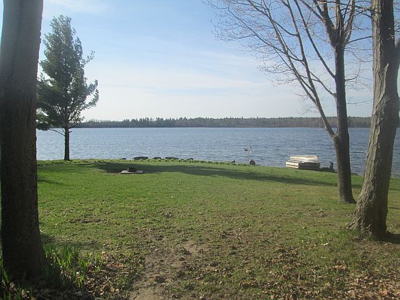 WAIT TILL YOU SEE THE EXTRAS..Year around LAKE FRONT cottage where you can fish off your dock or go ATVing or snowmobiling..trail system is right next to the property. This fully insulated home has hardwood floors, exposed beam vaulted ceilings, 2 gas stoves for heating ,new appliances, and on demand hot water heaters. Also included..a POLE BARN (built to store an RV) with workshop and storage loft, a seperate BUNKHOUSE with complete kitchen and outdoor gazebo and garage, a BATHHOUSE with washer and dryer and an extra bathroom, 2 RV set-ups on site with electrc and dumping station, drilled well, natural wildlife shore line berns,stone walk ways and retractable dock. Survey and letter of elevation done NOT IN A FLOOD ZONE. OH.. and all furnishings stay!Everything is here! Move in ready!