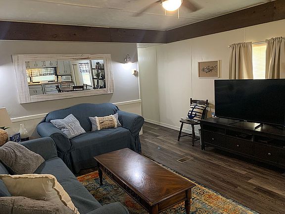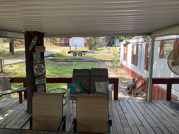 Remodeled Lake house comes FURNISHED, 2 bedroom 2 bath mobile home. Located in Tanglewood Bluff #1 addition near Duchess Creek Marina and Porum Landing. Area improvements include new restaurants and Dollar General. Marina and boat ramp 1 mile away. located on the "Blue Water" part of the lake, great Community. Central heat and air, Front load GE washer and dryer included, attached garage can fit golf cart, UTV, boat, or small car. .264 acre lot, 924 sqft., 500 sqft garage, 20x20 (400 sqft) covered front porch with tons of seating. Interior Remodel was finished July 2021 and includes the following -vinyl plank flooring in the kitchen, living, hallway and both bathrooms. -new carpet in bedrooms and closets -(subfloor had no rot or soft spots) -New parameter fencing -new paint on walls ceiling and cabinets -toilets -plumbing updated -light fixtures -cedar trim in living -new kitchen stove -blinds and curtains