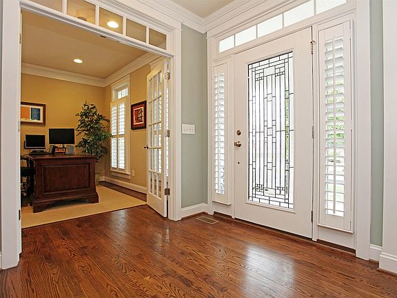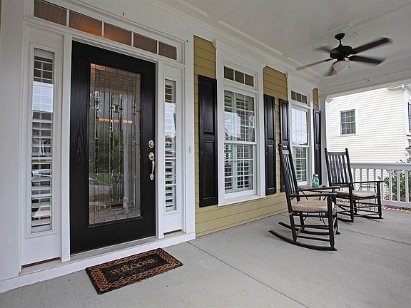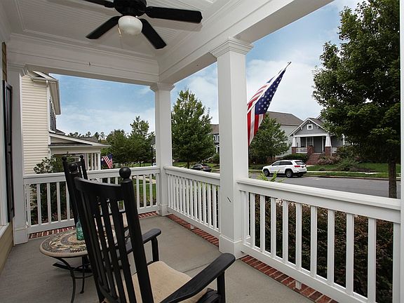 Beautiful well cared for Baxter Village home with relaxing front and back porches and private wooded area behind with access to walking trails! Features in home to include Hardwood floors on main, granite, tile back splash, Stainless Steel appliances, plantation shutters throughout, crown moldings, office with French Doors, open Bonus Room, guest suite on main level with full bath. Peaceful screened back patio with vaulted beadboard ceiling & ceiling fan leading down to extended patio viewing lush, fenced rear yard. Garage equipment with Utility sink & loads of shelving. This home is close to the pool & Village Hall!