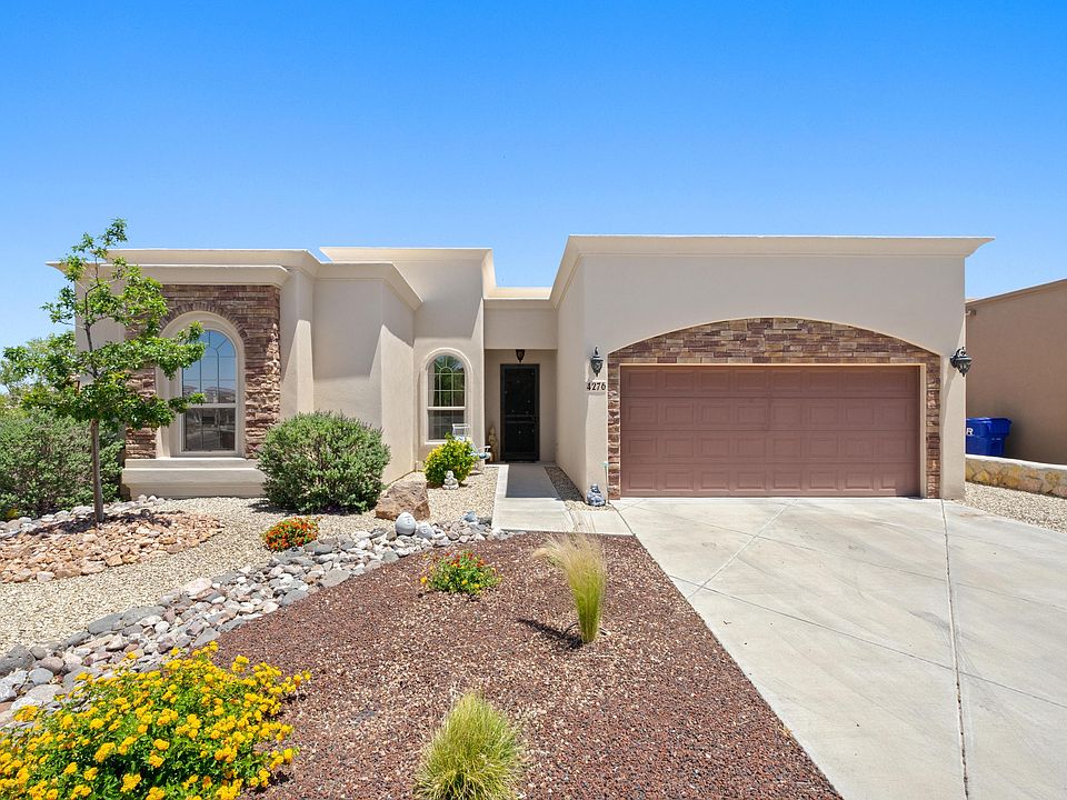 Are you looking for a Charming and Inviting Retreat with captivating curb appeal, upscale interior finishes, meticulously cared for and move in ready? This home features a spacious naturally lit great room, open floor plan, stainless steel kitchen appliances including the refrigerator, split plan bedrooms each with their own walk in closet, the master bath enjoys double sinks, a deep soaking garden tub, walk in shower & his and her walk in closets. Unwind in the peaceful backyard garden with covered patio, pergola, drip irrigation system and 6' raised rock walls. It's the whole enchilada, make it your own now!