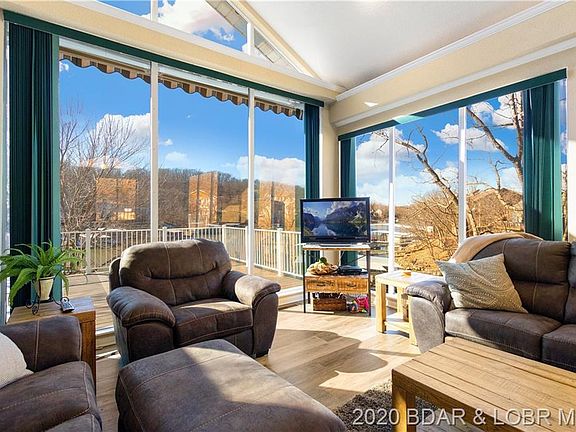 This Sophisticated and Luxurious Retreat Reflects that Magical Merging of Inspiration and Architecture on the Beautiful Lake of the Ozarks! The entryway draws you into a lavish layout made for entertaining. Spanning over 2,000 SF, this magnificent waterfront residence graced by soaring ceilings and wall-to-wall windows is a haven for admiring the lake scenery. The Master Suite presents massive windows, tray ceilings, a terrace overlooking the water and an opulent en-suite soaking tub and separate glass shower. The lower level houses a large rec room, three bedrooms, one full bathroom and glass doors that lead to the deck and fenced in backyard. A leisurely stroll to the Dock which offers a 12'x32' & 10'x24' Boat Slip with Hoists, dual covered PWC Slips with hoist, large dock locker and swim platform for tons of summer fun! PWC & Boat available for additional costs!