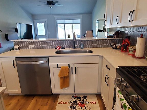 Wonderful townhome in a great location! Beautiful kitchen with great island, quartz counter tops, custom cabinets, stainless steel appliances. Large picture windows in the dining room and great room. Vaulted ceilings. Hardwood (LVP) throughout dining, kitchen and great room. Community park, and 2 dog parks. Covered patio East facing backyard. Garage is insulated.