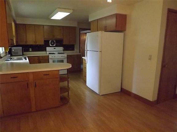 This 2 bdrm 1 bath ranch is well built with a 2 car attached garage that leads into the spacious breezeway. Large eat in kitchen, cozy up to the fireplace in the large sunny living room, fully fenced back yard, refrigerator (2017), sump pump (2016), ducks cleaned (2016), basement has professional dryloc (2016), back up generator stays with the home, new windows, and roof.