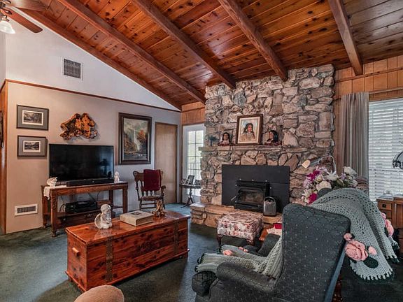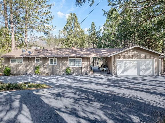 Relax on the expansive deck overlooking Lewis Creek. Sit by a cozy fire in front of the rock fireplace. These picturesque scenes could be your every day life or a dream vacation with this wonderful home close to Bass Lake & Yosemite!The great room features a gorgeous wood cathedral ceiling and is perfect for entertaining, with eating area open to the kitchen. In the kitchen you'll find hardwood floors, gas stove top, tile counter tops, and knotty pine cabinets. Heated floors and a jetted tub in the hall bathroom creates a spa like experience. French doors and dual pane windows are consistent throughout, even in the storage room next to the detached 2 car garage.