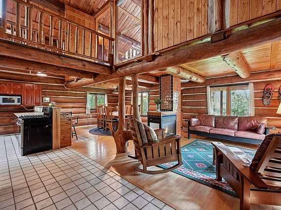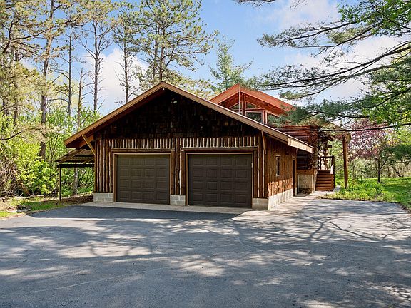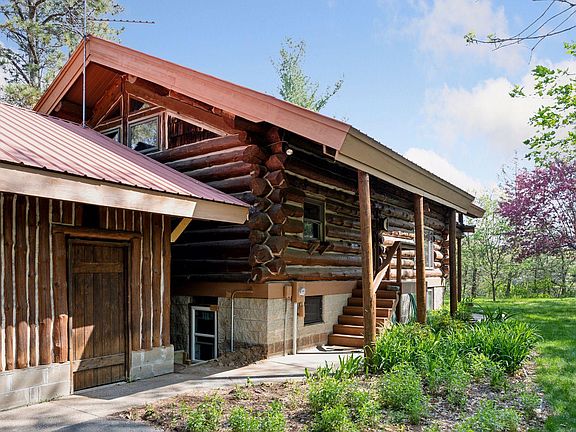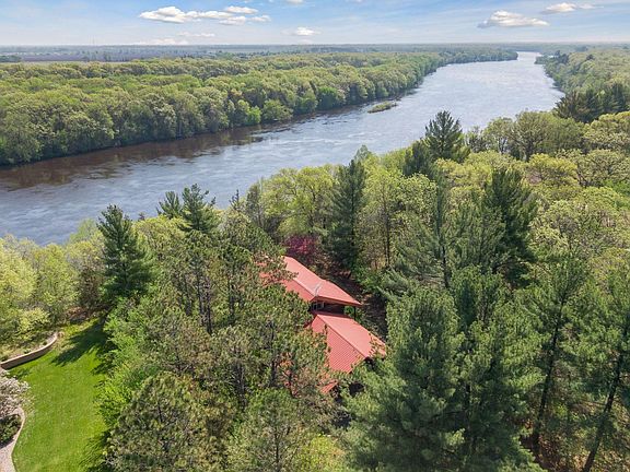 Nestled in nature, this custom-built sanctuary offers breathtaking views of the Mississippi River. Crafted from Red Pine logs, this home exudes warmth and character. It features three levels of exceptional craftsmanship and inviting comfort. The main floor's open plan connects the kitchen, living, and dining areas, with large picture windows inviting natural light. The upper level boasts a cozy loft area, a beautiful bath with a clawfoot tub, and a picture window. The primary bedroom, overlooking the backyard, features a spacious sleeping loft with a full wall of windows, offering a bird's-eye perspective amongst the canopy. The lower level walkout features a generously sized family room with abundant windows, accompanied by a bedroom, bonus room, laundry, and bathroom. Outside, a separate deck provides a perfect setting for al-fresco dining above the river. This enchanting retreat offers a rare blend of comfort, uniqueness, and natural splendor.
