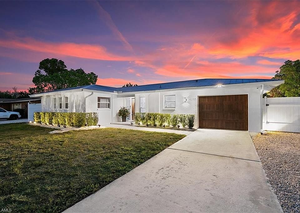 Pristine upgraded Ranch home. This cozy yet spacious property is impeccably maintained. The home is an entertainers dream featuring an open floor plan, plenty of natural light and a completely fenced back yard with an expansive 1,100 square feet paved turf patio with outdoor lighting including a concrete block grill/pizza oven with sink, a side entrance to yard that can store a boat, RV. Entrance walkway includes a 160 square feet paved walkway, white marble front entry, newly painted interior/exterior including roof, newer Frigidaire microwave and fridge, both shower tiles updated, enclosed lanai ceiling upgraded, garage epoxy floor with led lights, newer 6 inch seamless gutters, newly installed smoke/carbon dioxide detectors, underground utilities, tiled throughout, and updated kitchen. The home is equipped with smart features that include a/c WIFI controller, wired camaras and all access doors with keypad entry. This home is a must see.