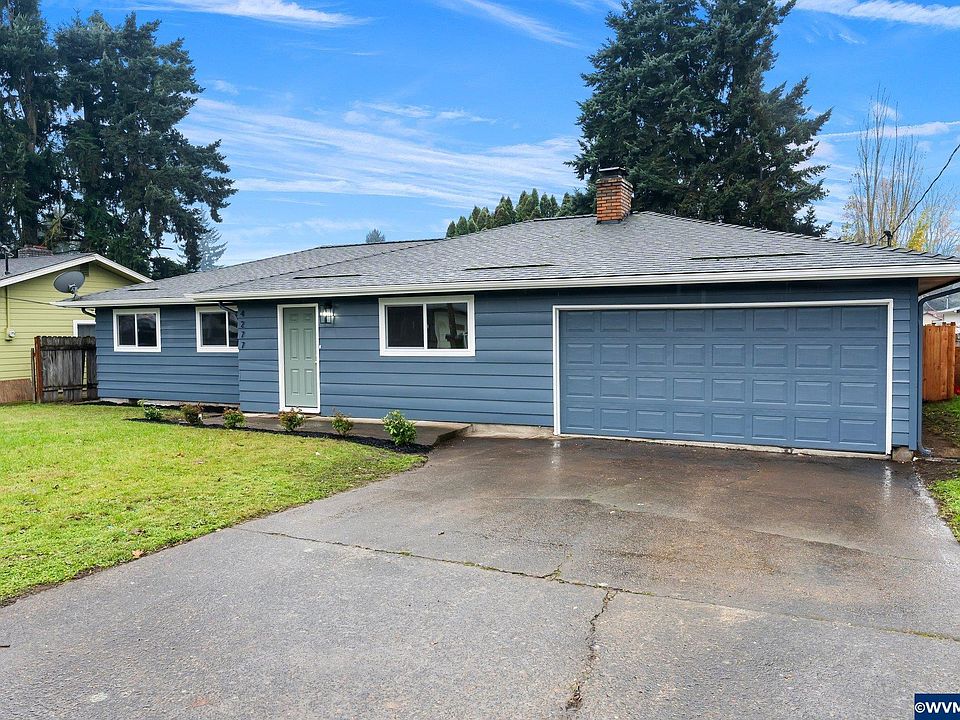 Main level living at its finest! Remodeled 3 bed, 1.5 bath single-level home in the heart of Keizer, just a stone's throw from Weddle & Claggett Creek Schools. This charming residence has undergone a complete transformation. Front living room transitions effortlessly into a brand new kitchen. Home offers brand new flooring, and fresh paint throughout. Ideally located half bath just off the kitchen. Step outside to discover a fully fenced backyard, providing a secure space for outdoor activities. Don't miss