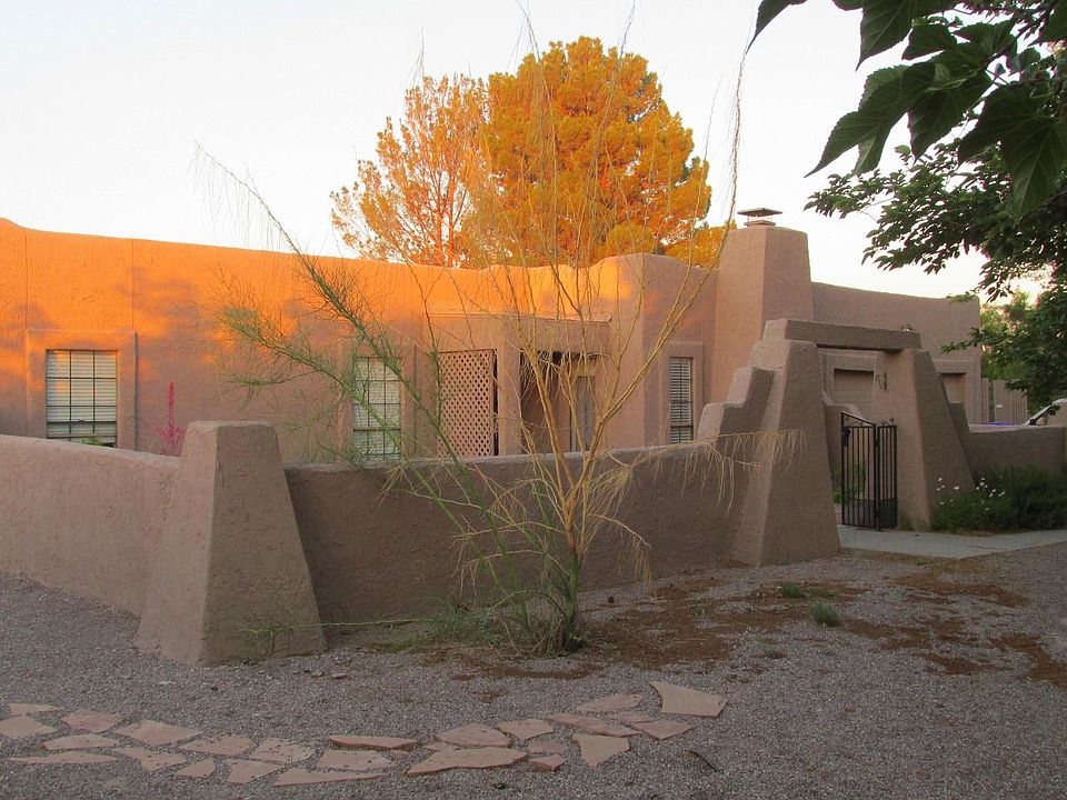 Quiet privacy on 1/2 acre in Las Alturas, yet only 5 minutes from New Mexico State and the hospital. Two bedrooms, two baths. Study, living room, dining room, and library in semi-open floor plan. Pocket park across the street and one house up. Low maintenance drip irrigated yard with big shade trees and a gated patio area in front and in back. Laundry hookups, but no machines. Prefer no pets, but negotiable. Water (up to $100) trash and recycling services are included. Call to arrange viewing. Owner pays trash and up to $100 water per month, occupancy 4, no smoking, pets negotiable