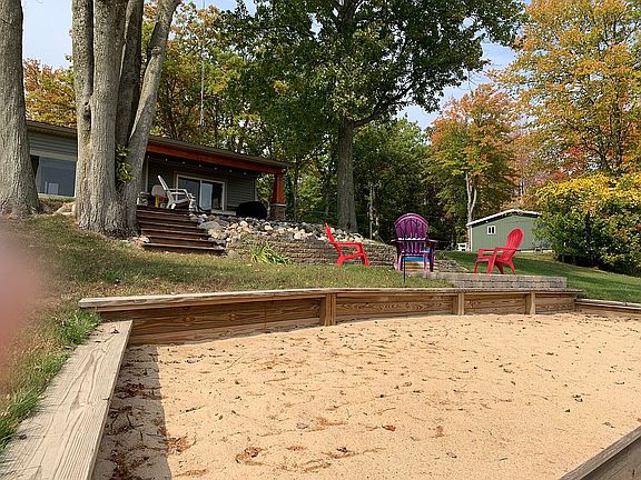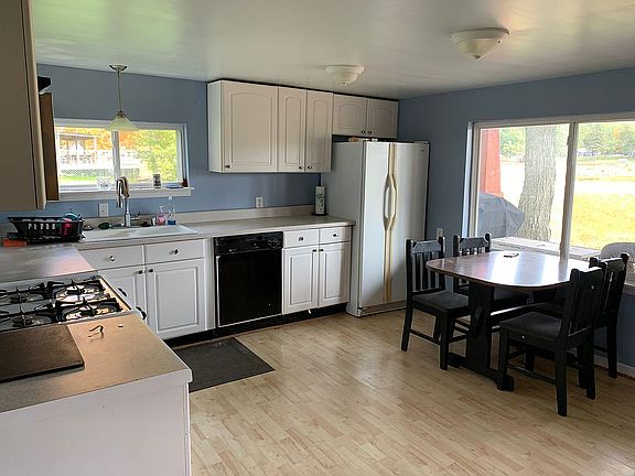 Great investment house when the water returns to Wixom Lake. Plenty of room for family and friends. Nice outdoor space with two patios and beach area for the kids. There was no damage to the house during the flood. Furniture negotiable. Remodeled home with many upgrades. 80' of frontage on main Wixom lake. 3 bdrm, 1 full bath, Fully remodeled with new; metal roof 2016, siding (vinyl and stone) 2016, vinyl windows 2016, new PEX plumbing in 2015, new electrical 2017, natural gas furnace new in 2000, new natural gas water heater 2014, carpet new in 2005, new bathroom in 2016, new lower deck 2017, new road side porch deck 2017, upper deck 2010, sandy beach, city sewers, 1 car garage, spacious lot and living quarters for entertaining. Cable and internet ready. Dishwasher currently not working....