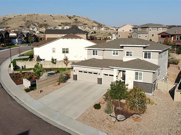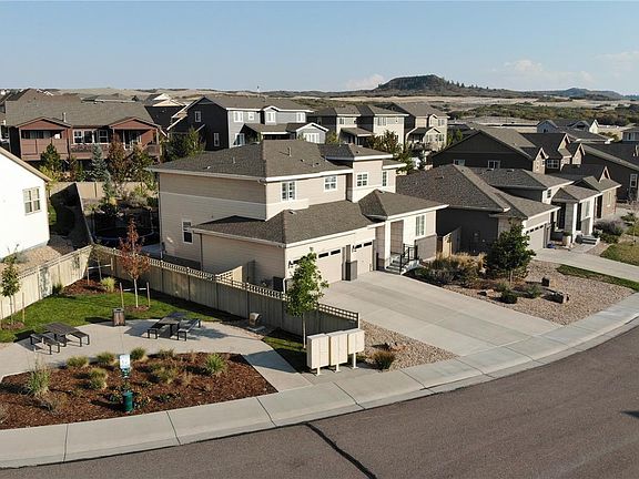 Your search ends here with this beautiful home! This home has a low maintenance xeriscaped yard, a massive deck and covered patio, all perfect for entertaining and enjoying the Colorado weather outdoors. Conveniently located adjacent to small community park including hoa maintained lawn, picnic table, beautiful flowers and mail boxes. This home is a 3 minute walk to the heated community pool. From the house you can walk, bike or run up to the mesa trail above Rhyolite Park. The highly rated World Compass Academy is within a few minute drive as well as downtown Castle Rock. This property features a large kitchen with a large eat in island. The master bathroom features quartz countertops and a full five piece bath. Almost every window in the home is treated with high quality shutters as well as drapes. The 4 bed 4 bath home features a main floor office plus a bonus room that could be used as a bedroom (non-conforming), a playroom, second office or whatever you can dream of. From the top floor you get to enjoy some wonderful mountain views as well as interesting landscapes, plateaus and rolling hills that Castle Rock has to offer.