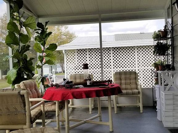 Walk in and you will want to stay! This beautiful home is offered turn key and move in ready. All furniture, appliances, decor, dishes, etc. will remain for new owner. You will have nothing to do but start enjoying your new home in the sun! Home features cathedral ceilings, all plywood sub-floors, updated plumbing, and freshly painted inside and outside. Open living space and high ceilings throughout the home make it feel much more spacious than you expect. Lots of storage in this home. Sitting on a high lot with no drainage worries here. With a screen porch on front and one at the carport, you can enjoy waving at the neighbors or a little quiet, private time. This home is in excellent condition and pride of ownership shows throughout. Located in the age qualified community of Clover Leaf Farms.