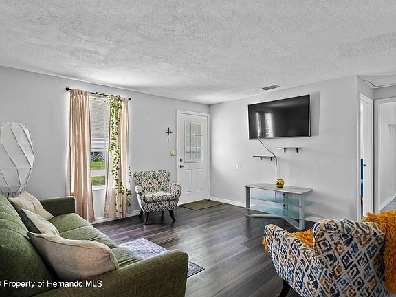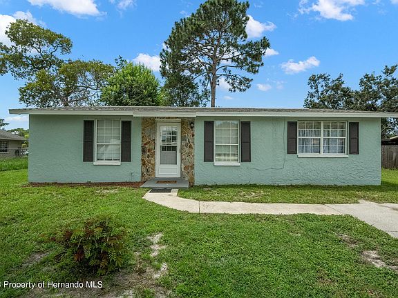 Welcome to this charming 3-bedroom, 1-bath home located in the beautiful Spring Hill, FL. With a total of 1,143 square feet and 946 square feet of comfortable living space, this property offers a cozy and inviting atmosphere. As you enter, you'll immediately notice the attention to detail and modern upgrades throughout the home. The interior boasts a tastefully renovated kitchen featuring newer stainless steel appliances and granite countertops. The kitchen's open layout seamlessly connects to a perfectly sized dining room, creating a harmonious flow for entertaining guests or enjoying family meals. This residence offers a desirable split plan, ensuring privacy and tranquility for everyone in the household. The bedrooms are well-proportioned, providing ample space for relaxation and personalization. Additionally, the property features a convenient inside laundry room, making household chores a breeze. Step outside through the sliding doors from the dining room, and you'll discover a private backyard oasis. The expansive patio area offers plenty of room for outdoor furniture, ideal for hosting gatherings or simply enjoying the beautiful Florida weather. A shed provides additional storage space for tools and equipment, keeping the garage clutter-free. One of the standout features of this property is the absence of both a homeowner's association (HOA) and community development district (CDD) fees. This means you'll have the freedom to personalize and enjoy your home without any extra restrictions or costs. Moreover, this home has been updated with new flooring throughout and fresh paint, providing a modern and stylish aesthetic. These upgrades add to the overall appeal and value of the property, making it move-in ready for its lucky new owners. Don't miss out on the chance to make this house your home. Schedule a viewing today!