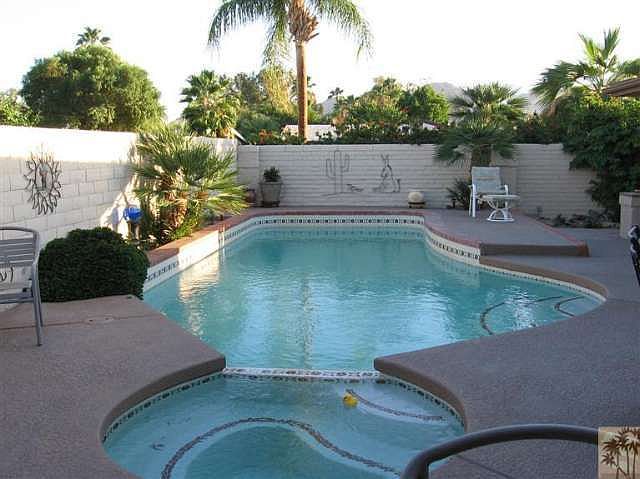 Palm Desert Country Club Jewel! An exceptional quality pool home with fairway view offering elegant country club living w/o high HOAs! This 3-bdrm 2-bath home boasts an open floor plan, large windows, plantation shutters; wet bar with glass shelves, and foot lighting; beautiful smooth stucco gas log fireplace; and a kitchen completely upgraded to include honey walnut cabinets, granite countertops and a tray ceiling with ceiling fan. Master bedroom is replete with built-in shelves on each side of the bed for storage and tons of closet space. Great desert landscaping surrounds the home including orange, tangerine, and grapefruit trees! Front and back patios have speakers and 12V exterior lighting. Includes handy golf cart garage accessible on the fairway side, and private gated entry. PDCC offers pay as you play golf, a full service bar/restaurant, and live entertainment! Better grab this one quick! Brokered And Advertised By: RE/MAX Consultants Listing Agent: Cindy Stevenson