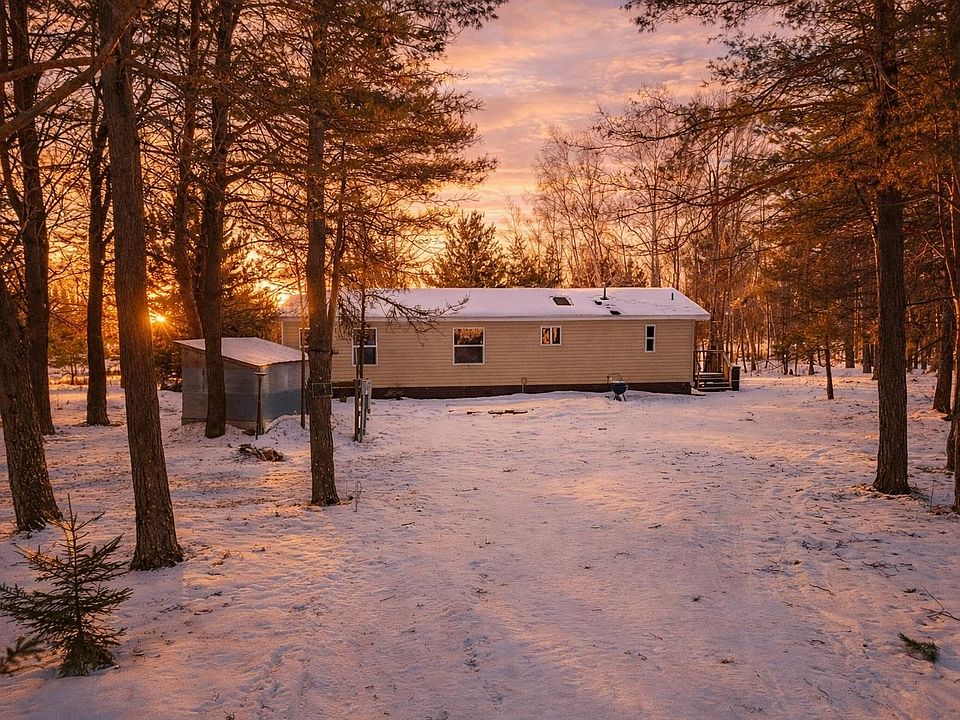 Escape to your own private sanctuary where the dawn breaks over 45+ acres of rolling meadows and whispering woodlands. This expansive property is a true recreational haven, perfectly balanced with open clearings and timber that provide a natural habitat for local wildlife. Wander down to the tranquil on-site pond or head to the established deer stand at the back of the acreage, where quiet mornings and successful seasons await. At the heart of this landscape sits a single-level home designed for easy living and connection. The open-concept floor plan seamlessly blends the kitchen, dining, and living areas, creating an inviting space to share stories of the day’s adventures by the fireplace. Retreat to the primary suite, a private area featuring a walk-in closet and a soaker tub—the ultimate way to unwind after a day spent exploring the outdoors. Practicality meets peace of mind with a brand-new furnace and a compliant septic system already in place. Whether you are seeking a premier hunting camp, a weekend getaway, or a permanent homestead with room to breathe, this property offers a rare setting to create your own legacy in the great outdoors.