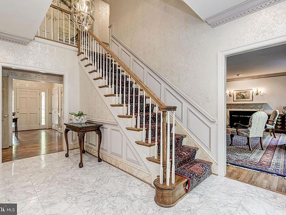 4278 Buckskin Lake Drive is a magnificent estate in the coveted neighborhood of Buckskin Woods that leads with its stately curb appeal, grand entertaining spaces, and considerable private quarters. Quietly set beyond serene ponds and mature trees a vast driveway welcomes you to this brick colonial style home with distinguished columns that includes 6 bedrooms, 4 full baths, and 2 wood burning fireplaces. Perfectly situated on over 3 acres, this unforgettable property spans approximately 6,000 SF of well-curated living space with over 2,000 additional in the lower level. Custom wallpaper, hand painted murals, elegant moldings, sunbathed windows, high ceilings, and beautiful hardwood floors are some of the outstanding features available. The grand foyer is a breathtaking welcome to this elegant home, catching your eye immediately with its gleaming marble floors. Anchored on one side of the foyer is the exquisite living room embroidered with custom moldings and a beautiful fireplace. On the other side of the foyer is the formal dining room, a wonderful entertaining area well-suited for celebratory meals highlighted by elaborate moldings including wainscoting featured throughout the home. With Andersen French doors and views of the grounds, the family room is a bright and comfortable room that has been outfitted with a second wood burning fireplace and intricate crown molding. The eat-in Chef's Kitchen is spacious and well-appointed with granite counters, Cherry cabinetry with slide-out shelving, a center island, high-end appliances, planning station with access to the patio, and varied width hardwood flooring with a border inlay. Adjacent to the kitchen is a custom wallpapered full bath with granite counter and an exceptional room perfectly suited for a home office, den, or main level guest room showcasing built-in bookcases. The substantial first upper level is an exciting collection of 4 bedrooms and 2 full baths. Fall in love with the hand painted nature scene mural at the top of the stairs before making your way into the spacious bedrooms. The primary suite is graced by a sitting room ideal for a home office, a sizable bedroom, an incredible hand painted Giverny inspired water lily mural that spans the room, two skylights, dual closets with storage systems, and an en-suite bath with a large soaking tub, separate shower, and 72 inch vanity. Three additional generously sized bedrooms and a full bath conclude the first upper level. The second upper level presents two additional expansive bedrooms and a full bath. To conclude the interior of the home, the full lower level offers ample recreation and storage space. Enjoy spring and summer on the exquisite flagstone patio overlooking the park-like wooded nature views or take a tranquil walk around the property to the ponds among the shaded trees. Additionally, this home features an oversized 2 car garage with an electric car charger, zoned HVAC with 3 furnaces, and large gutters added with roof replacement. This remarkable property aims to please and is truly the embodiment of Maryland's good life!