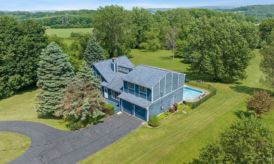 Nestled on 2.26 peaceful acres, this 1 family owned beautifully updated contemporary home blends modern comfort with private, country charm. A circular driveway welcomes you to this thoughtfully designed 3-bedroom, 3-full-bath residence, offering both space and functionality throughout. The lower level living room has a cozy wood stove that sets the tone for relaxing evenings. The remodeled kitchen is a cook’s dream, featuring granite countertops, updated cabinetry, and direct access to an upper deck that overlooks the sparkling in-ground pool—perfect for entertaining or quiet morning coffee. The owner's added a spacious primary suite above the garage complete with an ensuite bath and three generous closets. An oversized walk-in pantry was added at the same time, offering abundant storage and convenience. The original primary bedroom features its own slider to a private deck and is already plumbed for a potential ensuite bath—ideal for guests or future customization. A second slider off the kitchen opens to the upper deck, while a third slider off the lower living room leads directly to the hot tub and pool area, creating seamless indoor-outdoor living. Upstairs, you’ll find a fully renovated full bathroom and two additional bedrooms, offering flexibility for family, guests, or a home office. Enjoy the best of both worlds—peaceful acreage with luxurious amenities, including an in-ground pool, hot tub, and multiple outdoor living spaces. This move-in-ready home is the perfect blend of comfort, privacy, and modern living. Delayed negotiations 6/22/25 at 5pm.