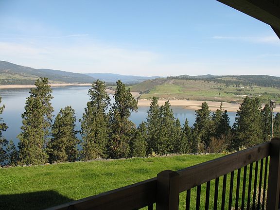 LOWER PRICE for quick sale. Waterfront property with incredible views of Lake Roosevelt! Watch the annual fireworks show from the comfort of your own yard. Super clean, well-maintained 2bd/2ba Marlette home, plus den with built-in cabinets/potential 3rd bedroom. Attached 2 car garage, open floor plan, laminate floors throughout, huge covered deck with lake views all around. Landscaped yard with sprinkler system, fire pit, and RV parking. Large, heated pole building with 3/4 bath perfect for RV and boat storage without having to winterize.
