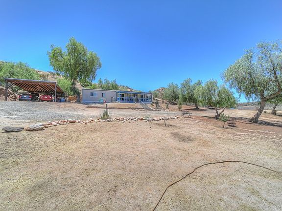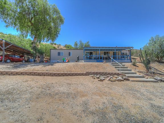 Great Aguanga property! This manufactured home is 1560 square feet 2 bed and 2 bathrooms with office. There is living room & family room with kitchen open to the family room. Many updates on the home including newer roof, newer AC, triple pane windows, newer well. The lot is 2 acres mostly usable land, fully fenced with automatic gated entry. There is a 2 car garage with workshop space and a carport. Covered front deck off the front side of the home, many mature pepper trees for shade and beauty. Great location off Sage road with close access to Temecula.