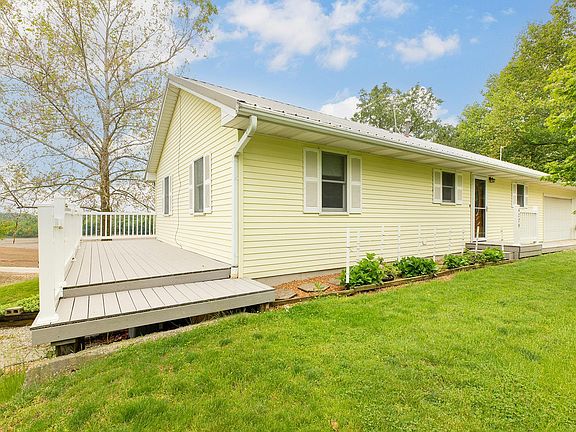 Country living at its best, this 2 bed 2 bath home is located 2 acres at the top of a hill overlooking 50 acres of bottom ground, a pasture and pond. Pond is a shared pond with the neighbor. The home features newer furnace and A/C, open floorplan, large bed rooms, full basement with walkout, porch and deck are new trex decking, 2 car attached garage, detached shed and whole-house generator. This place is clean, neat and waiting for you. Set your appointment today!!!