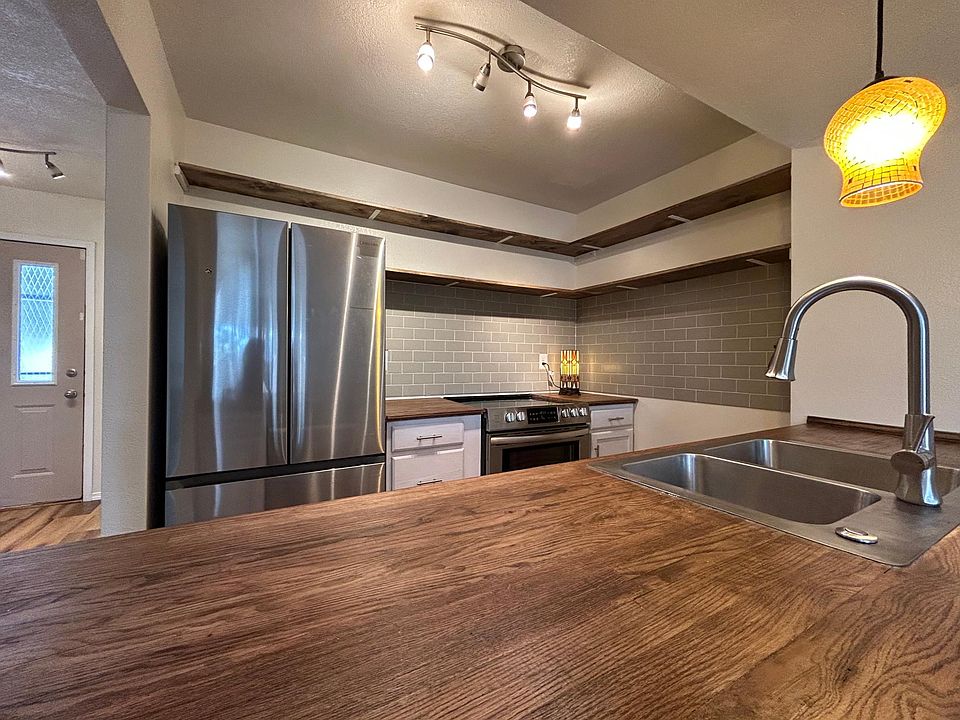 Be first to experience this newly renovated townhome. This is a tri level home with a driveway, attached garage (with tool storage), and gated back patio. This home has 3 Bedrooms, 1 full bathroom, and 2 half bathrooms. The laundry room features a spacious half room before entering the lower-level master bedroom. This unit features new windows and doors, making it energy efficient for all seasons. It also has AC for the hotter months. The kitchen features a complete remodel with a gorgeous custom wood countertop, and all new appliances. This cozy cross between bohemian and farmhouse rustic will make you feel right at home. The entire unit features new plush quality carpeting in the bedrooms, and new oak vinyl hardwood floors throughout the main level and bathrooms. The beautiful neutral paint tones make it easy to decorate and call this gem home. The numerous shelves and sunlight make this a plant lover's dream! This unit is located in close proximity to schools, grocery stores, Walgreens, and more. This is gated HOA community with a no pet policy. This property is a quick drive to work for military personnel commuting to Peterson or Ft. Carson. The COS airport is less then 5 miles away! Pikes Peak State College is nearby as well. Designated guest parking is available to residents and guests. The renter is responsible for all utilities. No smoking of ANY kind is permitted within the unit. Deposit with the first month's rent due on the signing date. NO PETS are permitted(This is HOA policy for the community). HOA rules apply to tenants. *INCOMPLETE RENTER PROFILES AND APPLICANTS THAT DO NOT MEET THE MINIMUM RENTAL REQUIREMENTS (income & credit) will not be scheduled for tours to respect the time of all parties.