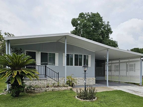 Located in the lovely, age qualified community of Clover Leaf Farms is a perfect home waiting just for you. This attractive 2/2 has much to offer and is priced for a quick sale. Home features vaulted ceilings, indoor laundry, newer vapor barrier w/ lifetime warranty, new laminate flooring in bedrooms, HVAC 2017, newer electric panel and more! The attached shed is all for storage (since your laundry is indoors) and has a new window AC unit for comfort. Side screened room and small covered front porch. The sub-floors have been upgraded to plywood and new flooring was laid this year in both bedrooms. Seller has regular pest control and termite prevention. A new stove and dishwasher were purchased in 2025. If you are looking for move in ready home that needs nothing but a new owner - this home could be the one for you. To schedule a showing or for more information - call today!