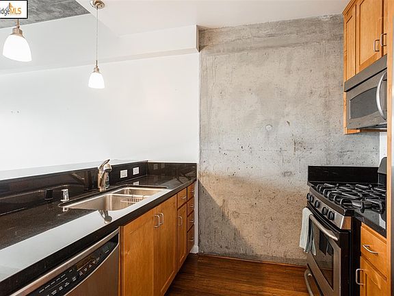 Here is your awesome opportunity to experience sophisticated condo living in the heart of the Bay Area. This spacious unit boasts one bedroom, one full bath, modern kitchen with stainless steel appliances, an in unit washer and dryer, a wall of windows that fills the space with plenty of sunlight, an open, airy floor plan with high ceilings, on trend exposed concrete ceiling and accent wall and an enclosed garage parking space. There is also a well appointed gym and courtyard, the perfect place for a relaxing Sunday morning reading the paper and drinking coffee. Picture yourself living walking distance from Jack London Square's most desirable amenities like the bountiful Farmers Market and renowned eateries like Scott's Seafood Grill and Bar, Yoshi's Japanese Cuisine and Lounge and the Farm House Kitchen. Only minutes from San Francisco, you can quickly reach the city via nearby Lake Merritt BART station, a peaceful ferry ride or drive onto the Bay Bridge from the nearby highway 880.