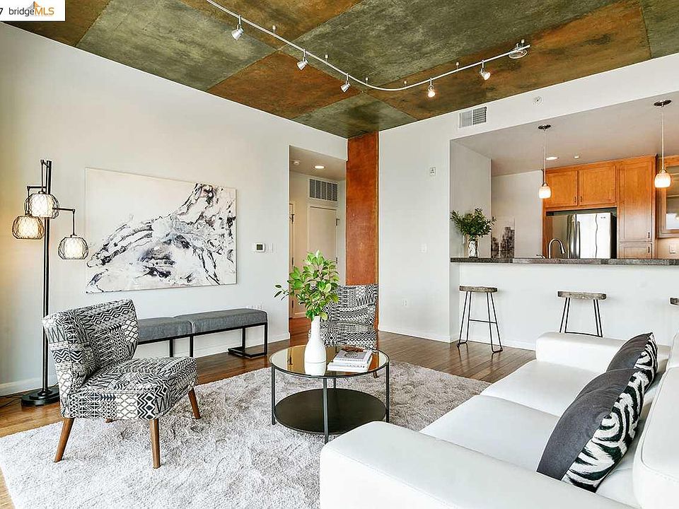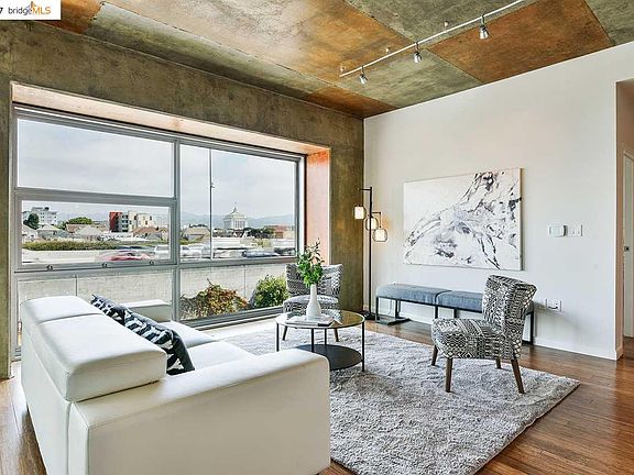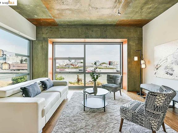 Beautifully maintained corner unit in Jack London's 428 Alice, a concrete and steel building completed in 2006. Northern exposure with views of downtown Oakland and the iconic Tribune Building. Bamboo floors, modern stainless kitchen, in-unit washer/dryer, custom walk-in closet, air conditioning. Fitness center, common grill & reflecting pool. Low HOA dues. Across the street from Chop Bar, short walk to BART, ferry terminal, dining & entertainment! WalkScore of 94.