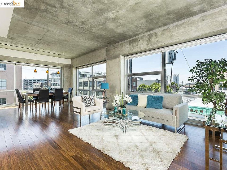 Modern and Elegant condo in the heart of Jack London Square! Unit 428 is generous 2 bedrooms and 2 full bathrooms corner-unit over 1,200 sq ft. It has bamboo floors in the kitchen/dining/living area and comfortable luxurious carpeting in two bedrooms. The kitchen is equipped with recently purchased stainless steel gas range, and refrigerator. The Living/Dining area has floor-to-ceiling glass windows with custom shades for privacy. The master bedroom has a generous size bathroom with two vanities for you and someone special, and a walk-in closet. There is another full-size bathroom across from the other bedroom. The ceilings are concrete, coupling industrial coolness with sophistication. A washer/dryer hookup is also in the unit. There are many wonderful restaurants and shops in Jack London Square. Easy access to BART, ferry to the City, Amtrak, and Highway. Awesome commute to San Francisco and beyond!! It's a truly fantastic space to call your home sweet home.