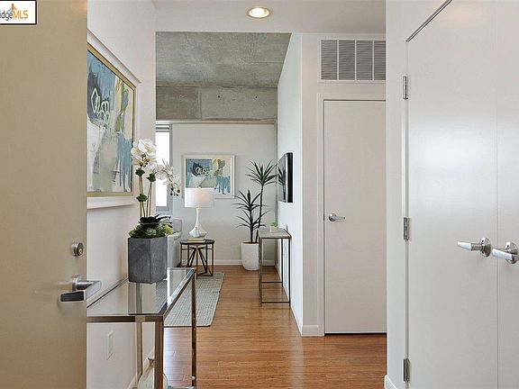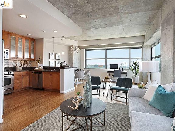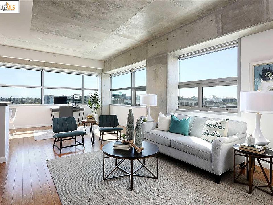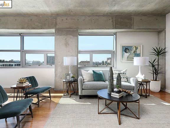 Bay view atop Jack London! The wrap-around views from this magnificent corner unit usher in a sense of serenity and space. Located in a state-of-the-art building, life is easy with modern amenities. The wide open living/dining/work area maximize views of the bay and thriving community. The updated kitchen with breakfast bar is perfect for entertaining as it opens to the living area. In-unit laundry comes in handy and air conditioning is a huge relief on those warm days. Two bedrooms and two updated bathrooms include a bedroom suite and bathroom with two separate vanities. The stylish contemporary building features a sleek gym, expansive common courtyard, storage, secure parking and package delivery area. Jack London Square is a flourishing neighborhood with everything to offer from paddle boarding on the estuary to urban wineries. It boasts highly acclaimed restaurants, farmers market, coffee, breweries, shops, ferry service, transportation and more!