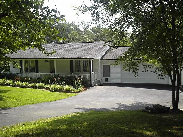 Home overlooks Laurel Lake.Four bedroom, 2 full baths.Lg eat-kitchen w/custom build cabinets,lg pantry.All stainless steel appliances.Oversize dining room,living room w/ fireplace.Upper level has (2) bedrooms master has a sitting area.All red oak maple hardwood floors.Lower level has large kitchen,living room,(2)bedrooms,bath, laundry room.Walk out onto a lg sunroom that overlooks the lake. Geo Thermal heat,central vac.double detached garage with storage building in behind. Double boat covered shed.Beautiful Landscape.
