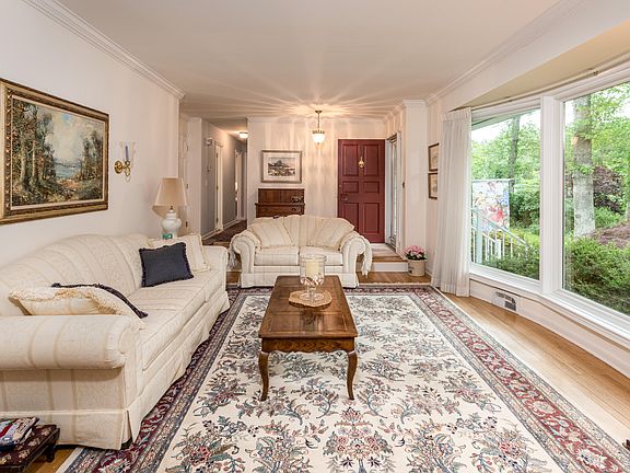 - RoomLivingRoomFeatures: Sunken, Dec Molding, Floor - Wood, Fireplace - Woodburning, Raised