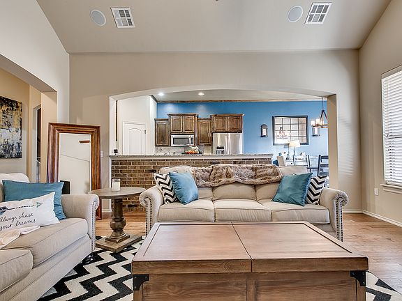 Price reduction on this wonderful floor plan with large kitchen and dining that open into the spacious family room with corner fireplace. Private study, HUGE game room, and really large master suite. Study, living and master have pretty engineered wood flooring. Kitchen has granite, gas stove, breakfast bar and walk-in pantry. Master bath has a walk-in shower, double vanities, a jetted tub and nice walk-in closet. Surround sound speakers. 3 car garage has an in-ground storm shelter. Sprinkler and security system. This great home is down the street from Mitch Park YMCA, Uptown Grocery and lots of restaurants and shopping. Don't miss this one!