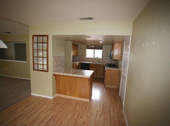 Retreat to this beautiful single level 3 bedroom, 2 baths plus den/office home Corner location with great views this property has upgrades throughout.The kitchen includes granite counters and custom tiled back splashes stainless steel appliances, and upgraded cabinetry,and light fixtures. Plantation shutters were added in 2011. The kitchen and dining areas have wood floors. Milgard French doors were installed in Master Bedroom and Living Room. There are fruit trees including 2 orange and Persian Mulberry. Back yard is fenced, and private patio areas including mature landscaping. Tile Roof and Much Much More...