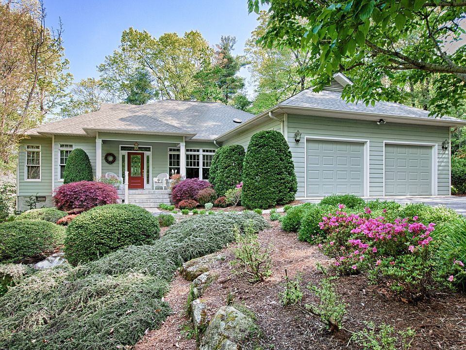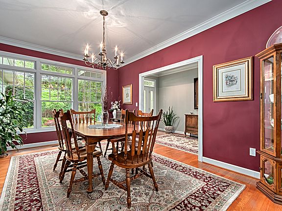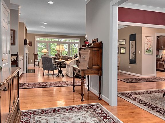 Don't miss the opportunity to own this special home in Kenmure on a private cul-de-sac surrounded by natural woodlands enhanced by perennials & walkways. Relax on the front porch, lower patio, back or streamside decks. Stainless appliances, Mouser cabinets, granite counters, wood floors, wide molding & beautiful built-ins in office & around 2 FPs in G.R.& Sunroom. Glass doors, ample windows all with transoms & easy care Masonite Color Loc siding